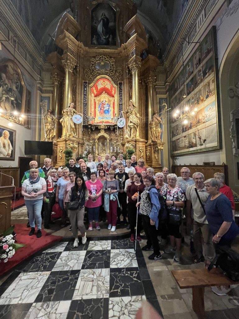 Zanim dotarliśmy do Przemyśla odwiedziliśmy miejsce wyjątkowe – Kalwarię Pacławską. Jest ona nazywana Jasną Górą Podkarpacia z uwagi na obecność cudownego obrazu Matki Boskiej Słuchającej i wyjątkowy kult maryjny, który rokrocznie przyciąga na tereny ziemi przemyskiej tysiące pielgrzymów. Zostaliśmy przyjęci przez pochodzącego z naszej parafii Ojca Adama Dudka, franciszkanina. Pełni on w Kalwarii Pacławskiej funkcję ekonoma. W pięknych słowach przybliżył nam ducha tego miejsca. Mogliśmy się tam zjednoczyć w modlitwie w czasie Eucharystii odprawianej przed cudownym obrazem Matki Bożej Słuchającej. Wieczorem dotarliśmy do Przemyśla – serca wschodniej Polski. W Przemyślu podziwialiśmy Starówkę, Rynek, Klasztor Franciszkanów, Klasztor Karmelitów Bosych, Katedrę grekokatolicką, Bazylikę Archikatedralną. Mieliśmy możliwość zwiedzenia i podziwiania wyjątkowych eksponatów w Muzeum Diecezjalnym, w Muzeum Dzwonów i Fajek. Był czas na prywatną modlitwę i spacer po tym pięknym mieście.